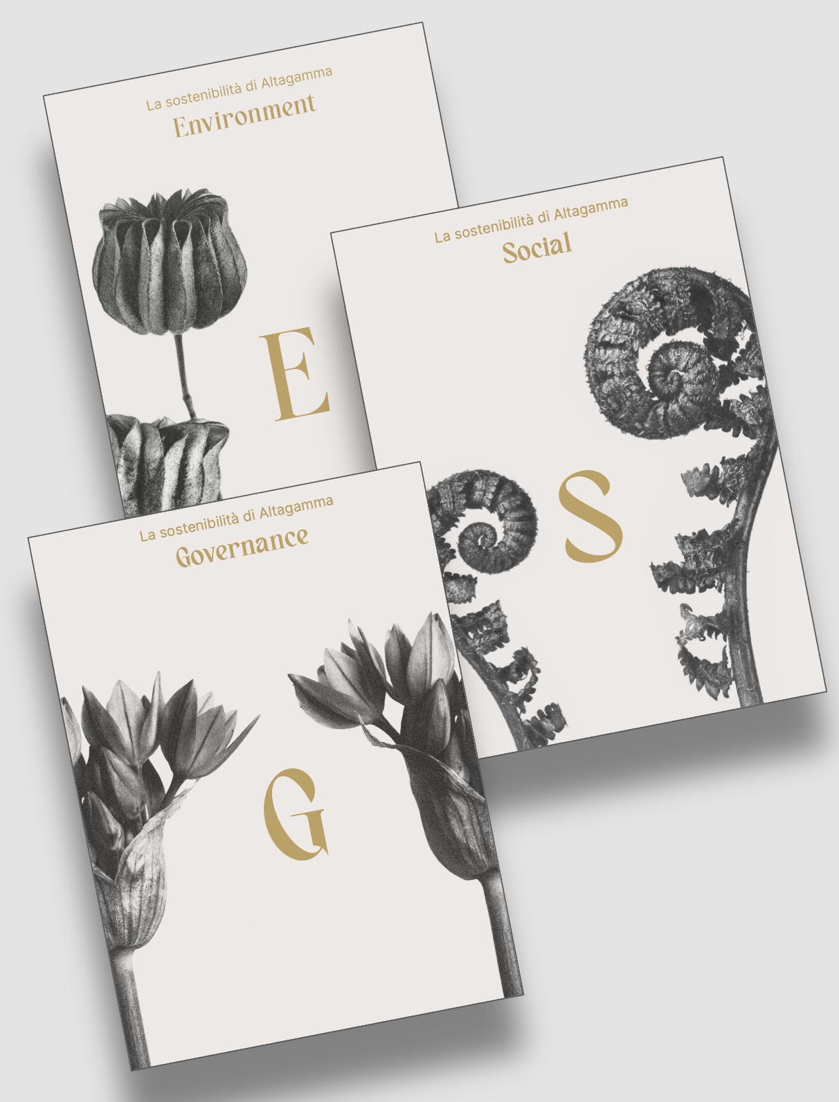 Per ciascun volume le Imprese Socie di Altagamma hanno scelto un tema o una serie di progetti relativi alla sostenibilità ambientale, all'impegno sociale e alla questione della Governance aziendale: i tre volumi, arricchiti da contributi di esperti in temi di sostenibilità, costituiscono così un trilogia che restitusce uno sguardo d'insieme su tutto ciò che rende le Imprese Altagamma dei soggetti responsabili che - accanto alla ricerca dell'eccellenza delle loro creazioni e dei loro servizi - operano nel rispetto dell'ambiente, valorizzando le persone e garantendo il futuro dell'azienda, dei dipendenti, dei fornitori e di tutti gli stakeholder.